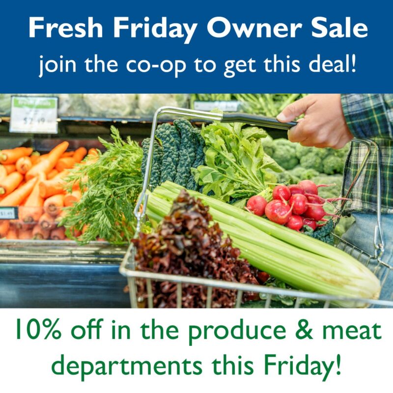 Save the date for Fresh Friday this Friday, Jan. 9! Co-op owners will save an extra 10% in the produce and meat departments. Thank you for supporting your … Read more