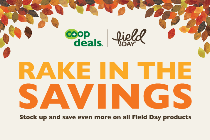 Thank you for all your support and for shopping local! Your co-op has sales on over 300 Field Day products, including everything from snacks and baking ingredients to canned goods, pasta, peanut butter and more. Plus, co-op owners save an extra 10% on top of these Co+op Deals!