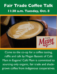 ![]() Our coffee talk has been rescheduled and will take place at 11:30 a.m. Tuesday, Oct. 8. Save the date! Megan Bassett of Café Mam in Eugene plans to ... Read more |